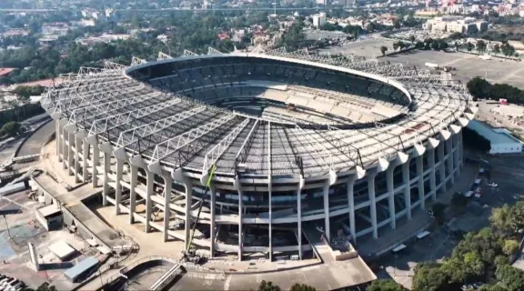 Vista exterior del Estadio Azteca, en Ciudad de México, donde se disputará el partido inaugural. Foto. Claro Deportes