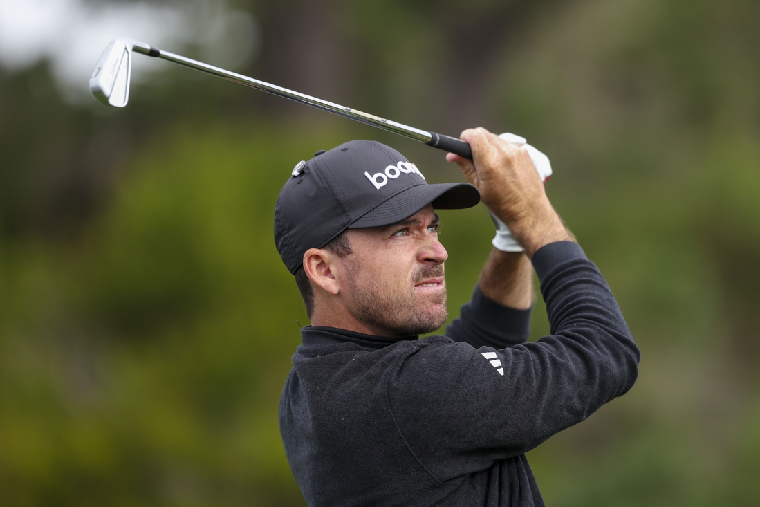 1 de febrero de 2025; Pebble Beach, California, EE. UU.; Nick Taylor golpea su golpe de salida en el quinto hoyo durante la tercera ronda del torneo de golf Pro-Am de At & amp; T Pebble Beach en Pebble Beach Golf Links. Crédito obligatorio: Imágenes Kiyoshi Mio-Imagn Puede ser una forma estresante de ganar un torneo de golf, pero Nick Taylor ha aceptado convertirse en el «Mr. Playoff» de PGA Tour.