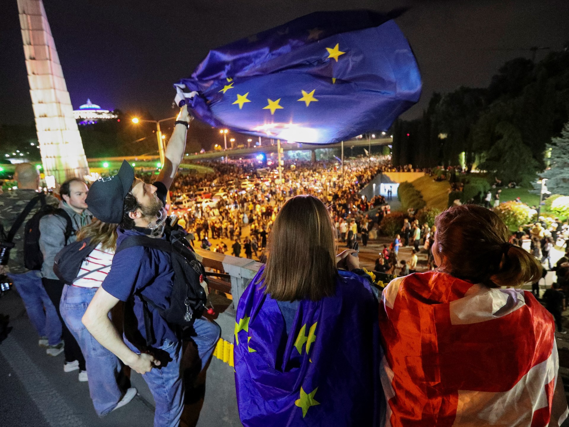 Decenas de miles de manifestantes habían cerrado el centro de Tbilisi un día antes en la manifestación antigubernamental más grande hasta el momento. La policía disparó gases lacrimógenos y granadas paralizantes para despejar a algunos de ellos.