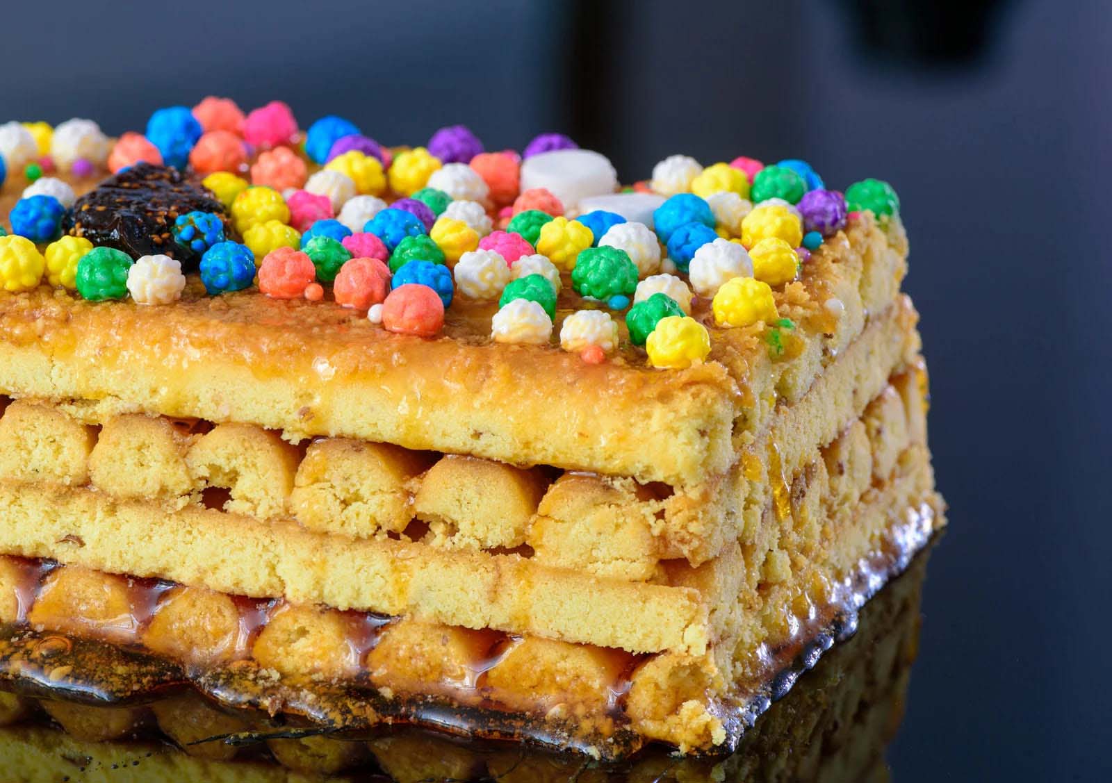 Imagine una masa dulce y con sabor a anís, en capas con delicioso jarabe de miel y rociado con los dulces más brillantes y festivos.