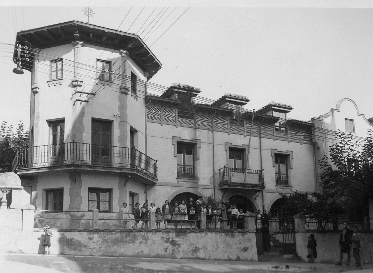 Cuaderno de Dinamarca se comenzó y terminó de escribir en 1938 desde el Hogar Infantil La Gota de Leche, Santander. A la izquierda, en la acera, tapándose los ojos con el brazo derecho, Matilde Expósito, su autora.