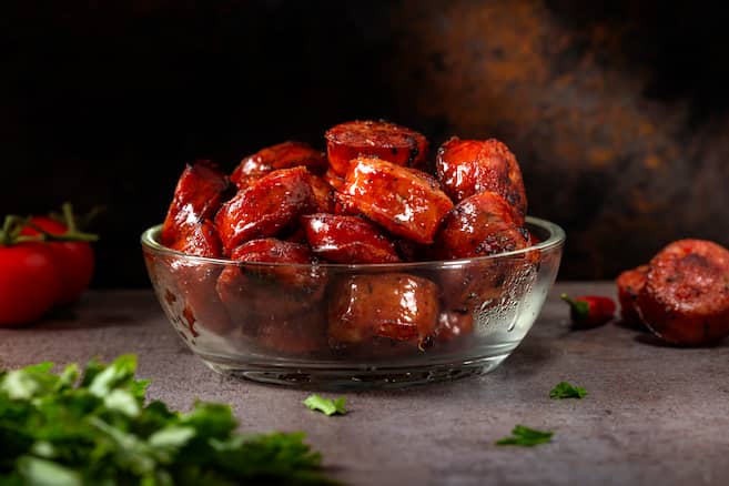 Baña esta cacerola con butifarras con tu salsa favorita. Nosotros te sugerimos una buena barbacoa.