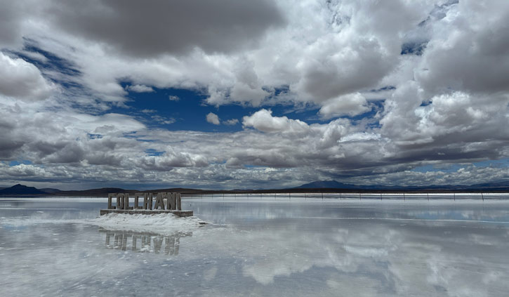 Las tormentas sobre el Uyuni crean una capa de agua poco profunda de unos pocos centímetros de profundidad.