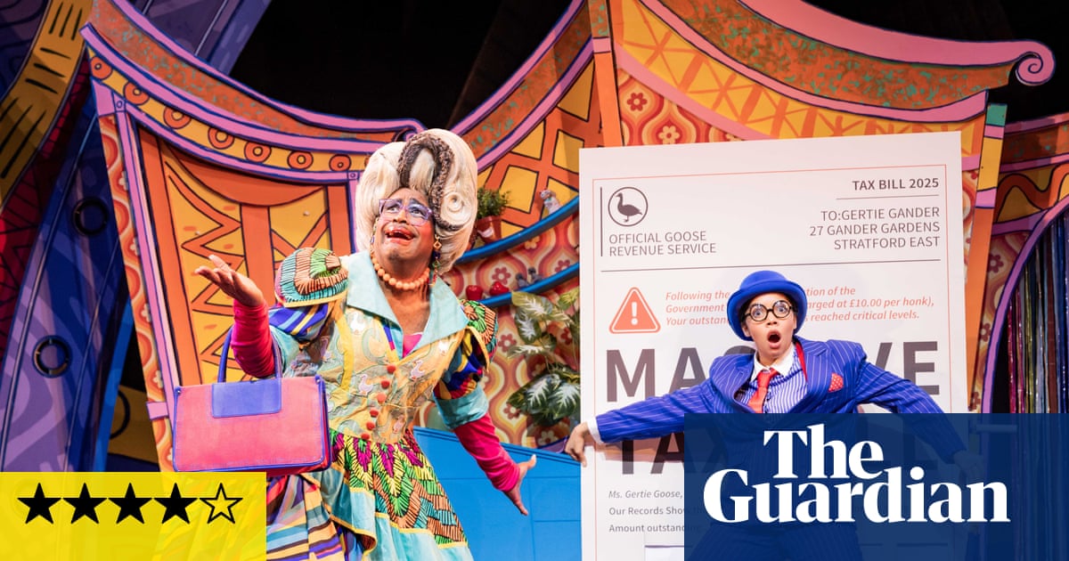 El diseño de Stewart Charlesworth convierte todo en un gran carnaval de color y estilo, y también hay mucho para disfrutar de la partitura con tintes afrobeat de Robert Hyman. No tiene sentido pretender que la narrativa es totalmente coherente (después de todo, es un panto), pero admiré el esfuerzo de Stone y Munyevu por acorralar este cuento de hadas de huevos de oro en una parábola de todo lo que brilla para nuestros tiempos llamativos y de mala calidad. ¿Canciones sarcásticas sobre cuánto deberíamos amar a los multimillonarios? ¿Diálogo que arroja suciedad sobre el infierno corporativo urbano a las puertas de este teatro? Estoy aquí para ello. Agregue actuaciones estelares (el malo de Mya Fox-Scott entre ellos) de un elenco de ocho personas que trabajan duro el uno para el otro y claramente se divierten, y tendrá un panto para apreciar.