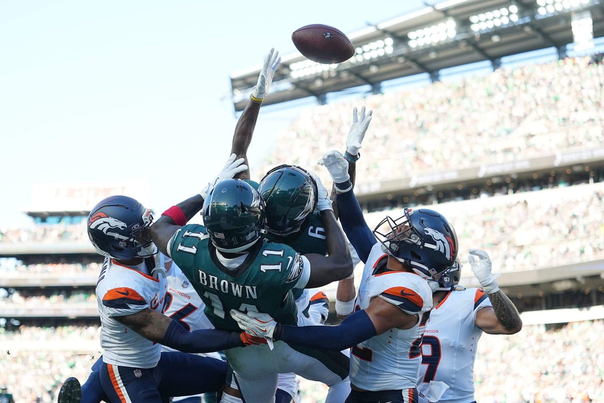 Los Philadelphia Eagles esquivaron el daño de jugar fútbol voluble durante cuatro semanas. No más. Los Eagles desperdiciaron una ventaja de dos puntajes cuando su ofensiva se estancó en la segunda mitad de la derrota 21-17 del domingo ante los Broncos de Denver. Esta disfunción fue diferente. Las causas fueron claras. Condujeron un plan de juego letal y eficiente hasta que un reventón de los Broncos se sintió inminente. Luego, sumido en el barro de errores autoinfligidos, las Águilas profundizaron en su plan y giraron sus ruedas hasta que los Broncos los alcanzaron.