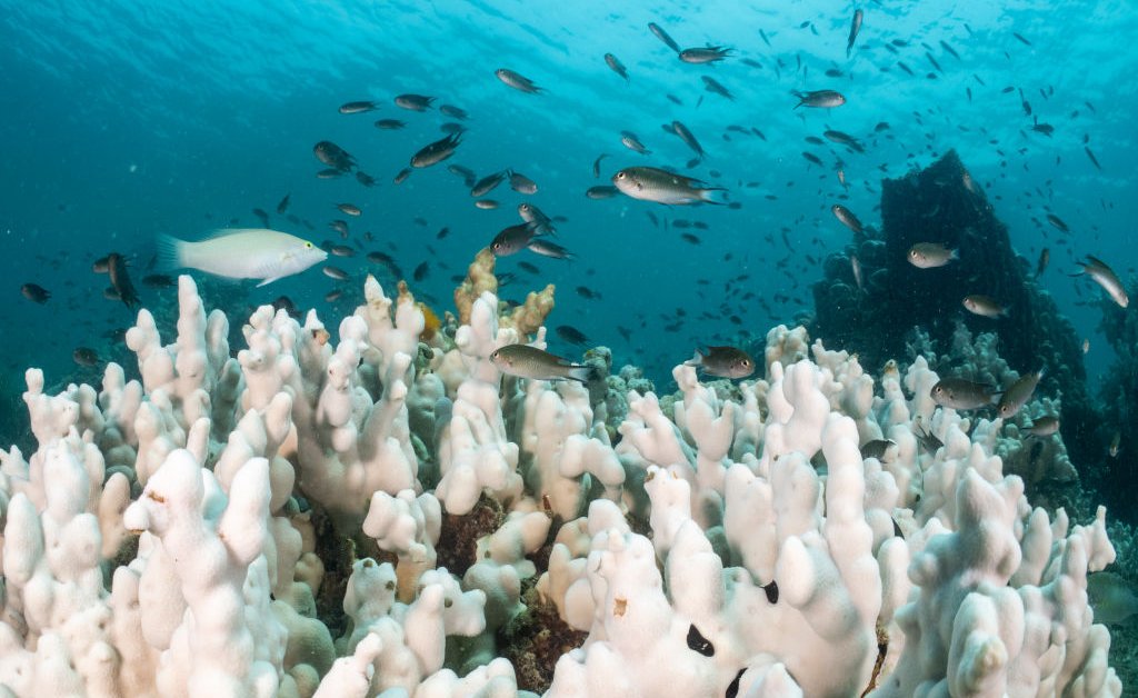 El segundo informe «Puntos de inflexión globales» publicado por la Universidad de Exeter encontró que los arrecifes de coral de aguas cálidas están superando su punto de inflexión. El aumento de la temperatura de los océanos, la acidificación, la sobrepesca y la contaminación se combinan para causar el blanqueamiento y la mortalidad de los corales, lo que significa que una gran cantidad de arrecifes de coral se perderán a menos que la temperatura global regrese a un calentamiento de 1°C o menos.