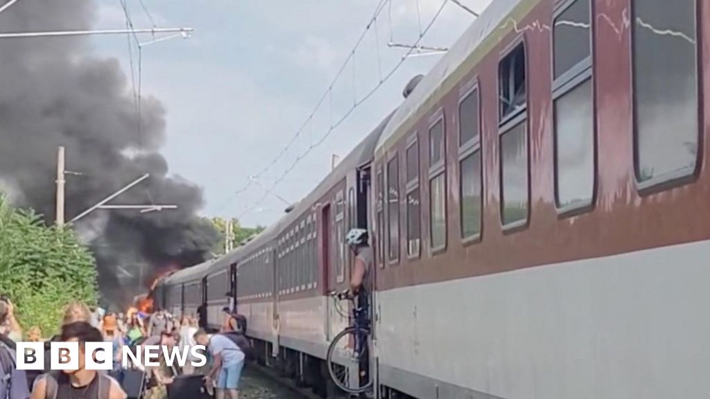 Los medios locales publicaron imágenes de video que muestran a pasajeros que transportaban equipaje junto a un tren parcialmente en llamas, mientras un espeso humo gris se elevaba hacia el cielo.