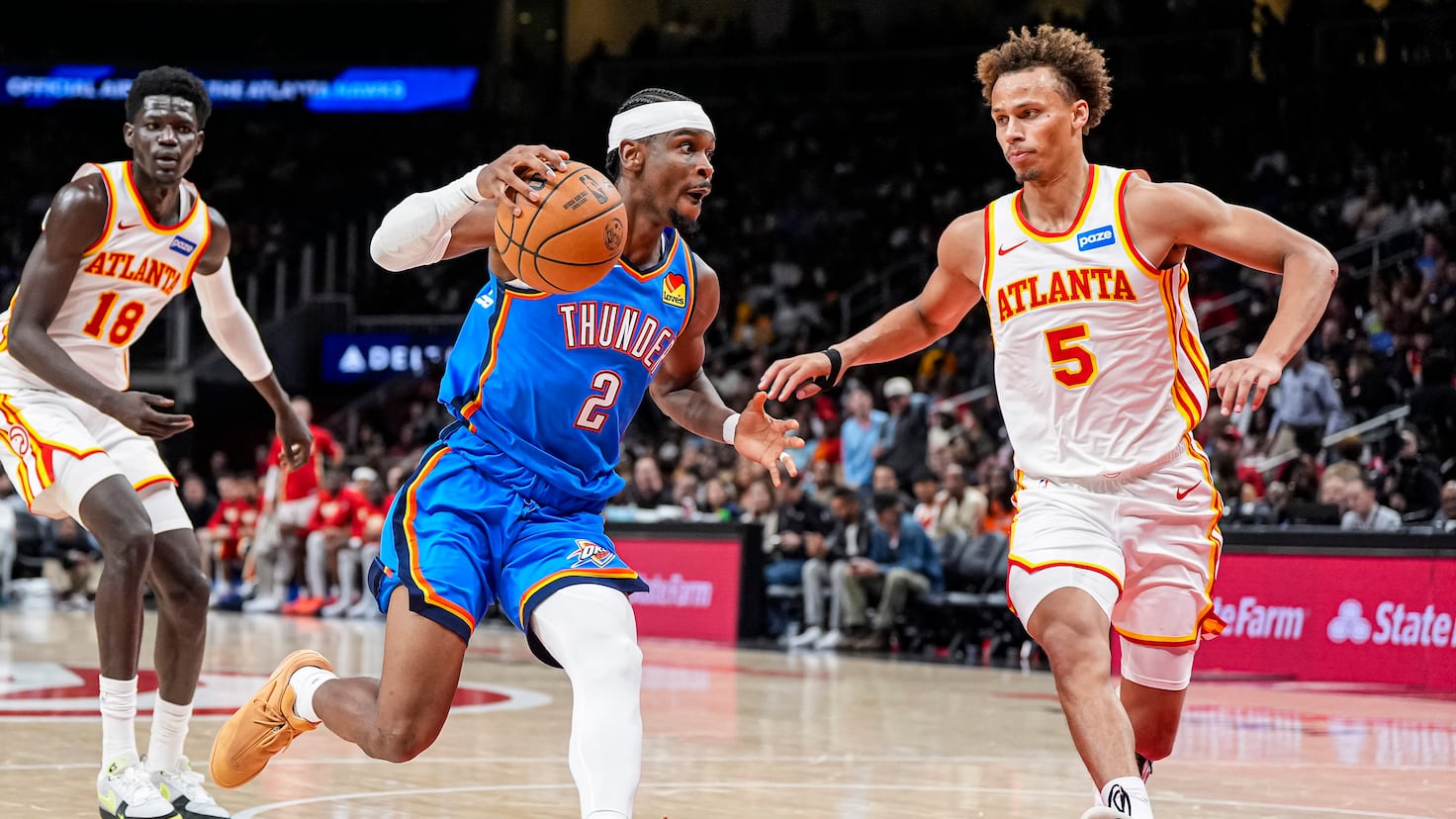 Pues la fiesta no para y los Thunder han comenzado la temporada igual que la acabaron: sacando provecho de la agonía como si no hubiera un mañana y con escasos momentos de tranquilidad… hasta ahora. Los Hawks, por fin, fueron un rival relativamente sencillo para la joven e imberbe plantilla que dirige Mark Daigneault: 100-117. Tras dos partidos iniciales llenos de estrés, con dos prórrogas en cada uno de ellos (contra los Rockets primero y contra los Pacers después, reeditando las ya mencionadas Finales), los campeones vigentes necesitaban bajar un poco el pistón por mucho que disfruten en el sufrimiento. y estén en una forma física privilegiada. Esto es muy largo y me doy cuenta de una somanta de palos cada noche tiene consecuencia incluso para ellos. Aunque claro, con la cara y la mirada de Shai ya queda claro que da bastante igual no tener prórrogas que tener infinitas. Esto es un martillo pilón, un rodillo que no se detiene ante nada y ante nadie. Sea de la forma que sea.