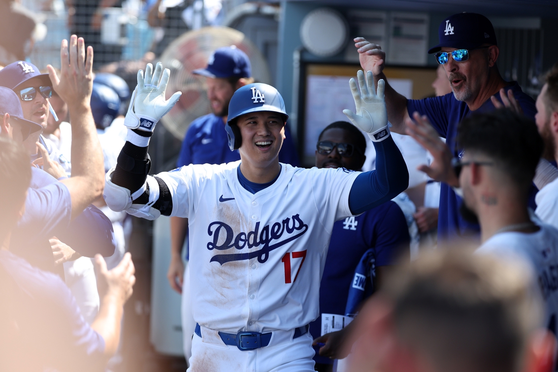 8 de septiembre de 2024; Los Ángeles, California, EE. UU.; El bateador designado de los Dodgers de Los Ángeles, Shohei Ohtani (17), es recibido en el dugout después de conectar un jonrón durante la quinta entrada contra los Guardianes de Cleveland en el Dodger Stadium. Crédito obligatorio: Kiyoshi Mio-Imagn Images Los Cachorros de Chicago serán el próximo equipo en ver de cerca a Shohei Ohtani cuando abran una serie de tres juegos como visitantes contra los Dodgers de Los Ángeles el lunes.