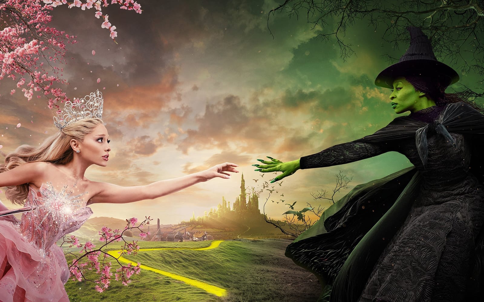 La escena de Ozdust deja espacio para las complejidades emocionales del momento. La coreografía se ralentiza y la cámara se detiene en lo que no se dice entre Elphaba y Glinda: el intento de conexión de la primera, la vacilación de la segunda. Es en estos momentos tranquilos e inciertos donde se siente el peso emocional de la escena. Esto es el Adviento: vivir en la tensión, en la pausa, en la espera. Nos entregan una canción en tono menor y nos invitan a responder.