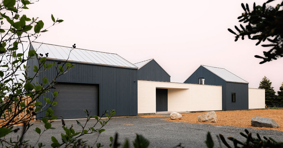Ubicado dentro del sereno paisaje costero del punto de Coley, CanadáContemplativo de Woodford Architecture residencia Abraza su dramático entorno marítimo con elegancia restringida. Compuesta de volúmenes de aguas y mono cántaros que se cruzan, la forma se hace eco de la tranquila lengua vernácula de la tradición construida de Terranova mientras articula una silueta moderna. El contraste textural define el exterior. El revestimiento vertical de gris oscuro se yuxtapone con blanco horizontal crujiente madera Poner un lado para esculpir una interacción matizada de luz y sombra. Los marcos estratégicos de colocación de ventanas extendieron las vistas del puerto, atrayendo el mar a la vida diaria, mientras que los espacios protegidos del patio median entre la comodidad interior y la exposición costera.