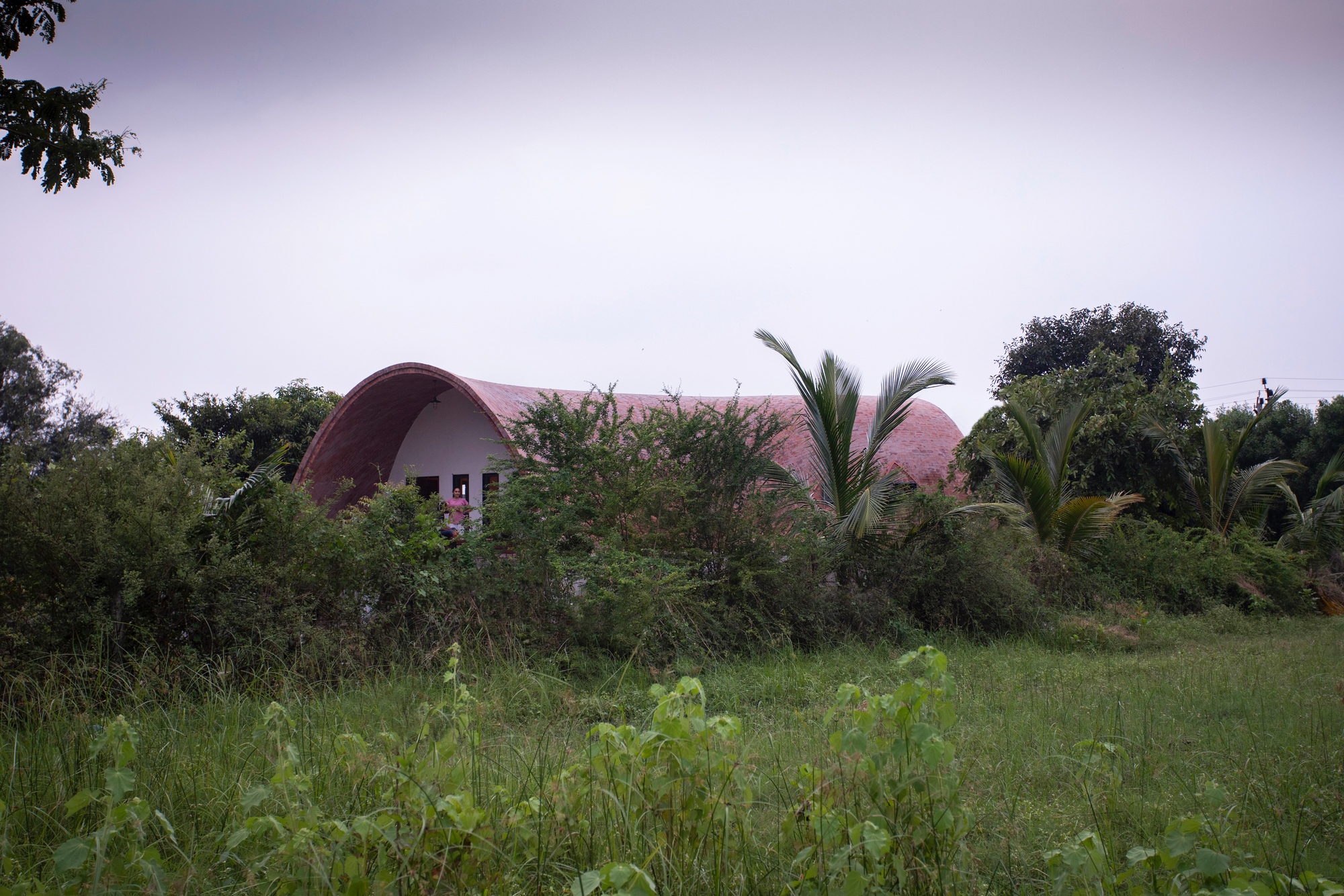 Descripción del texto proporcionada por los arquitectos. Ambientado en las afueras de Bharucheste fin de semana, la retirada crece de la tierra tanto como descansa sobre ella. La trama llegó con árboles maduros de frutas como Mango (Mangifera Indica), Chickoo (Manilkara Zapota) y Jamun (Syzygium Cumini), cuya presencia definió el diseño desde el principio. En lugar de despejar el sitio, la casa se concibió como una forma curva que teje suavemente alrededor del dosel existente, permitiendo que la arquitectura y el paisaje permanezcan en el diálogo.