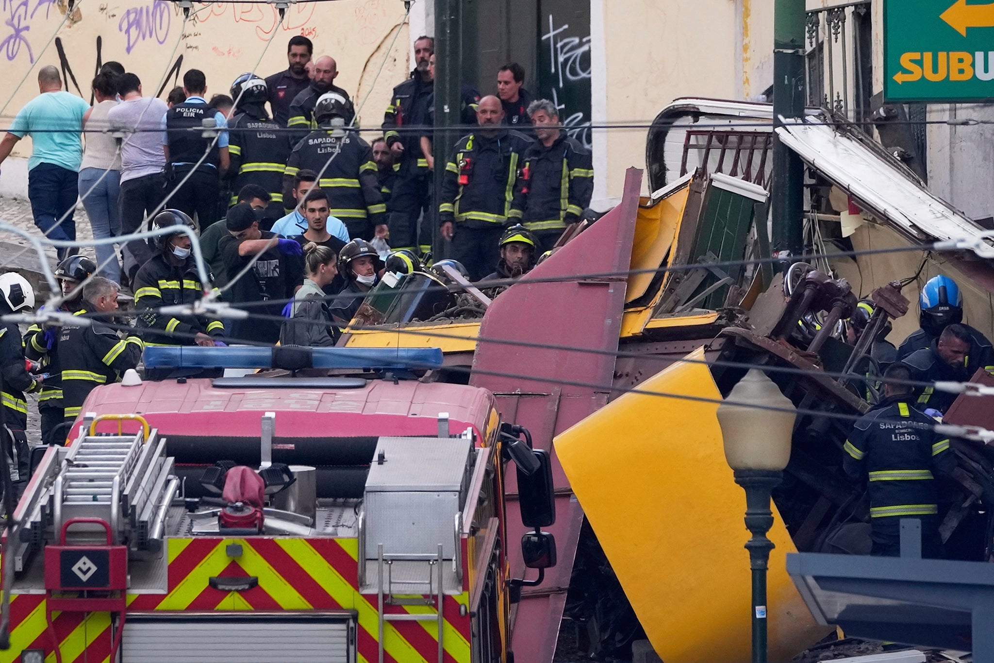 Las imágenes del sitio mostraron el funicular en forma de tranvía, que transporta a las personas por una ladera en la capital portuguesa, destruidos y trabajadores de emergencia sacando a las personas de los restos.