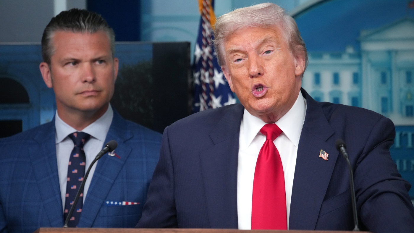 El presidente Donald Trump pronuncia un discurso durante una conferencia de prensa en la Casa Blanca junto con el secretario de Defensa, Pete Hegseth.