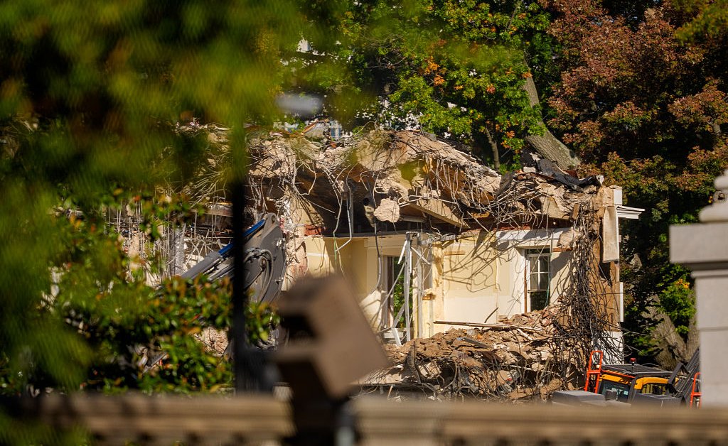 Y ahora vienen las topadoras, los cañones de agua y los muros de construcción para bloquear las vistas de la demolición masiva del ala este de la Casa Blanca, la última manifestación del esfuerzo del presidente Donald Trump por dejar su huella en uno de los edificios más emblemáticos de Estados Unidos. Para el fin de semana, el ala este será escombros, la última institución de DC destrozada por el trumpismo.