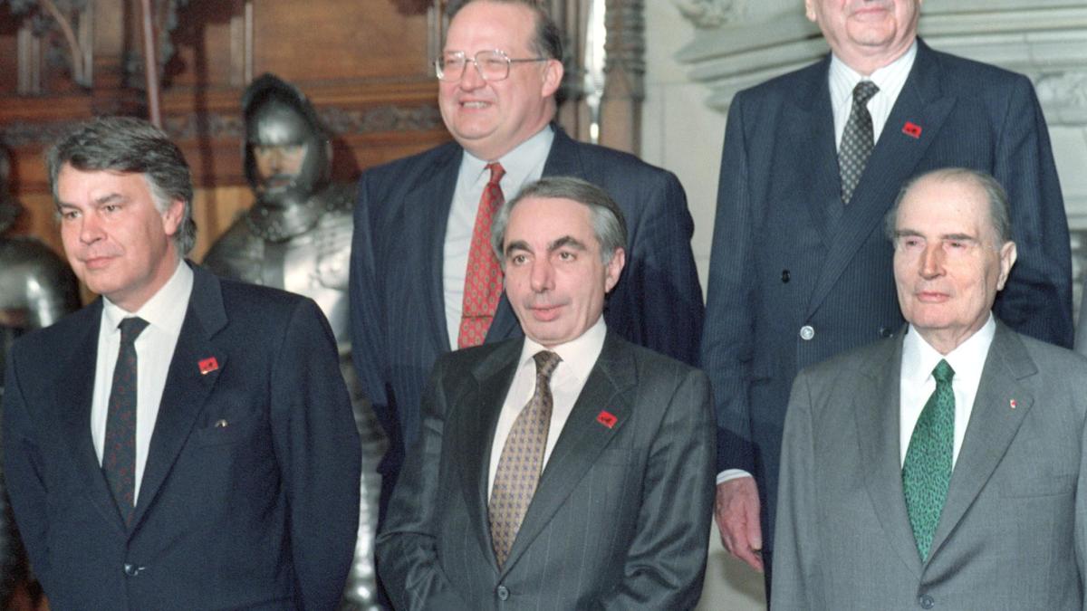González consiguió la cumbre de Edimburgo de 1992 el desarrollo de los fondos de cohesión. En la foto, junto al presidente italiano Amato, el francés Miterrand, la belga Dehaene y el griego Mitsotakis