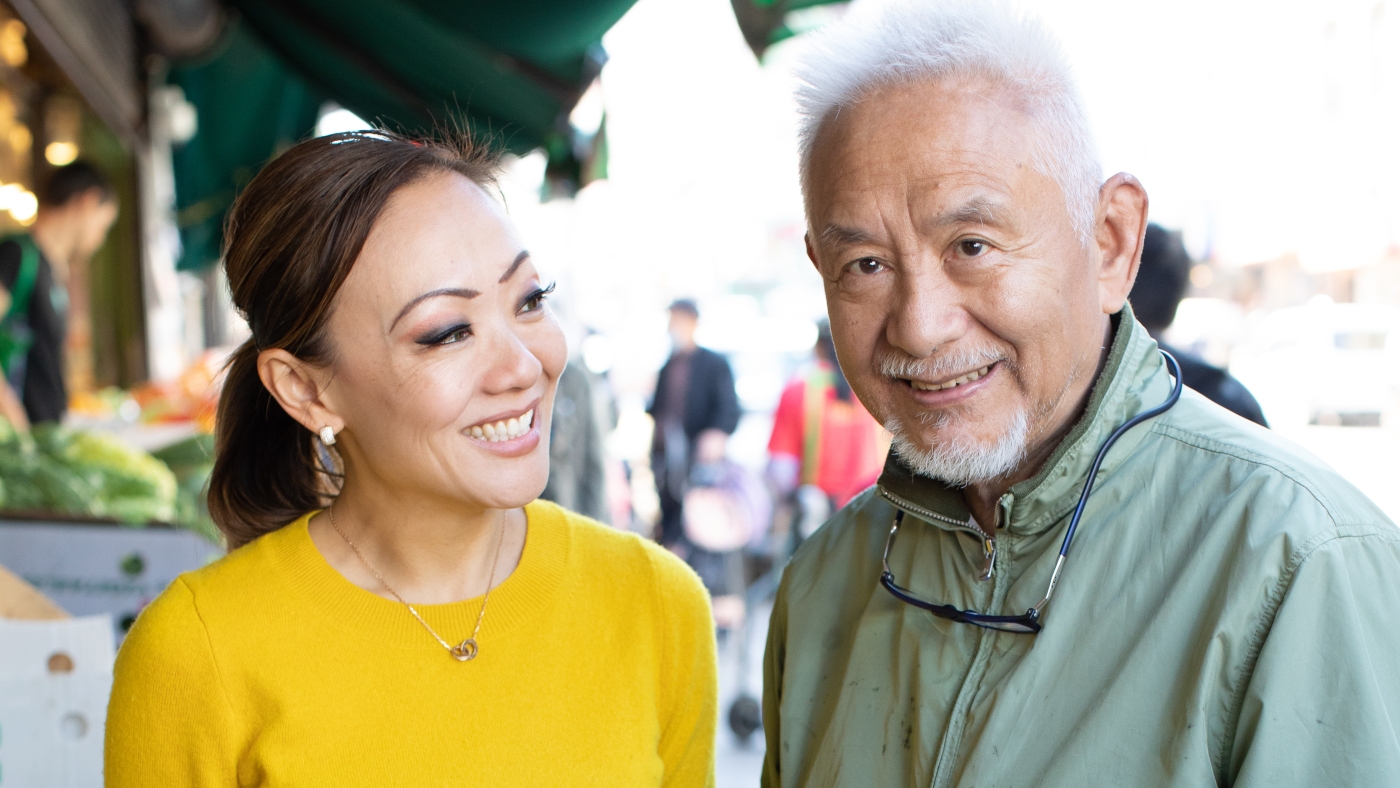 Peter y Kathy Fang sonríen por la cámara mientras compran verduras en el barrio chino de San Francisco. Son el dúo padre-hija detrás de la icónica casa de Nanking de la ciudad.