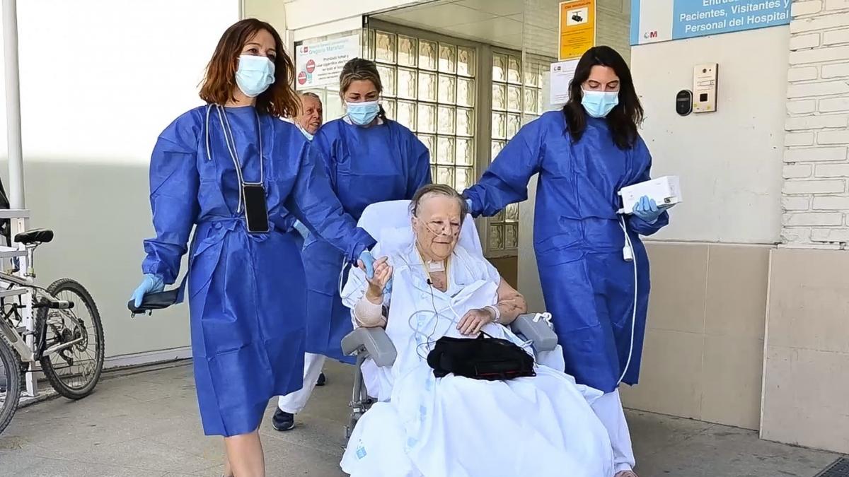 El personal del Hospital Universitario Gregorio Marañón de Madrid ha organizado un dispositivo móvil para dar un paseo por la calle a Juana Román, una mujer de 70 años que ha permanecido siete meses ingresada en la Unidad de Cuidados Críticos (UCI) por un infarto de miocardio.