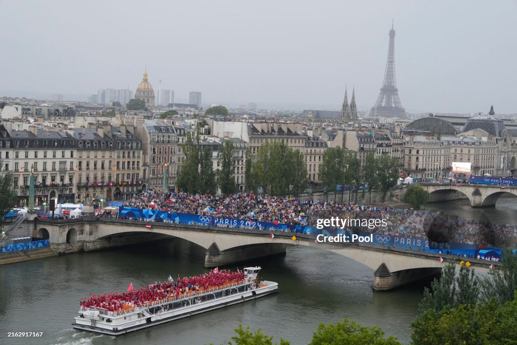 En lugar del tradicional desfile en el estadio, aproximadamente 10.500 atletas, incluidos los de el Caribe Entre ellos, Guyana, navegó en una flotilla de 3,5 millas de 94 embarcaciones por el emblemático río Sena de París. Los atletas uniformados vitorearon y saludaron a los espectadores, manteniendo el ambiente animado a pesar del cielo lluvioso.