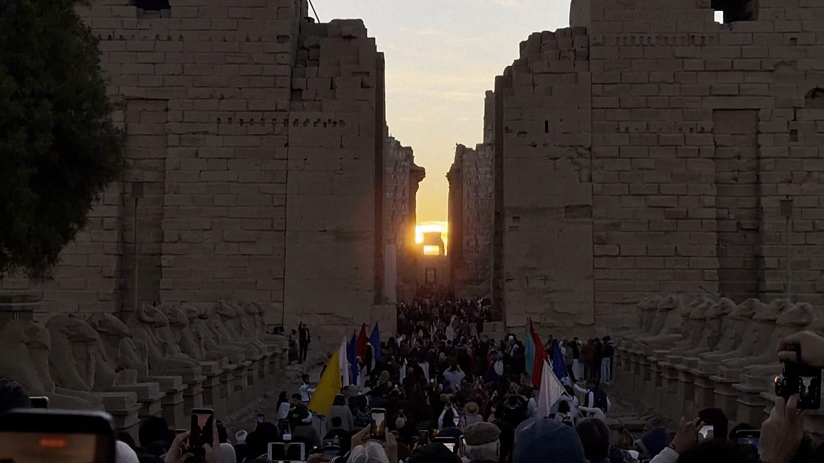 Cientos de visitantes en la ciudad egipcia de Luxor se levantaron antes del amanecer del domingo para ver cómo el amanecer del solsticio de invierno se alineaba con un antiguo templo.