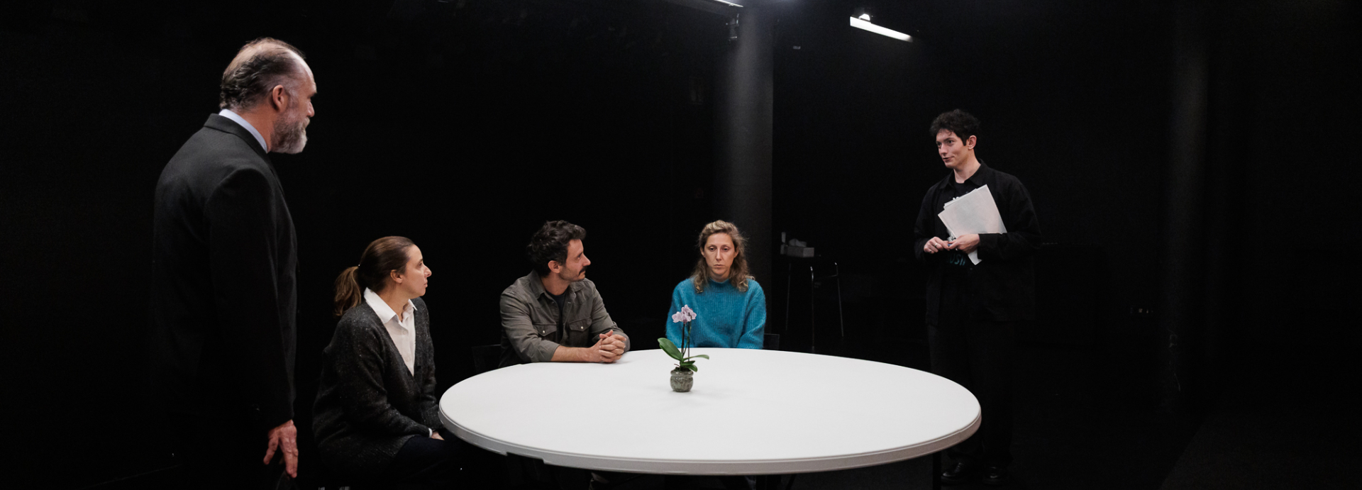 Llegan a una sala neutra para acabar de explicarse, y en el trayecto de variadas emociones, generar una exposición que crece en perfecta armonía escénica: emotividad de noble estirpe y bien medida intriga por medio de la cual el público se entera, poco a poco, de todo lo ocurrido en un aula donde un chaval entró a matar a ciegas.